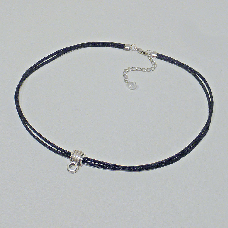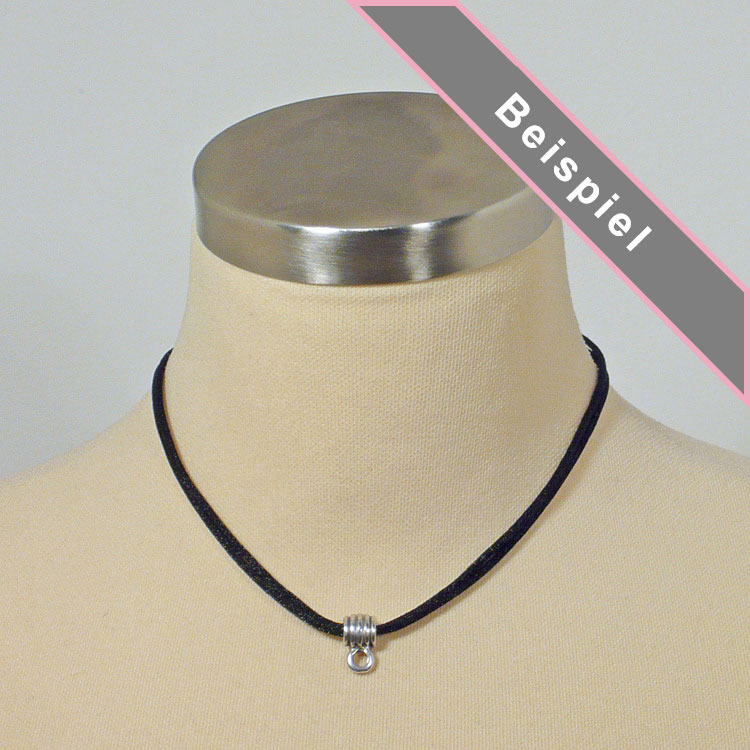 Die Fotos zeigen nur ein mögliches Beispiel und zwar mit schwarzer Satinkordel. Die Satinkordel ist aber in vielen Farben erhältlich.