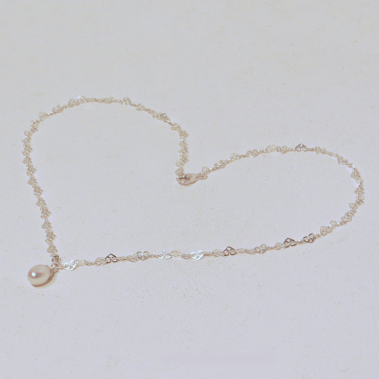 Die Kette aus 925 Silber ist etwas Besonderes, denn alle Kettenglieder sind in Brezelform gearbeitet Zusätzlich hat diese feine Schönheit einen Anhänger in Fom einer wunderschönen Süßwasserperle.