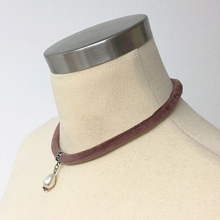 Die Kette aus wunderbar weichem Samt legt sich Collier-artig um den Hals. Sie wird halsnah getragen.