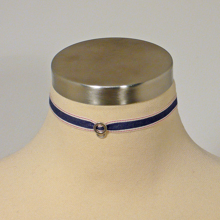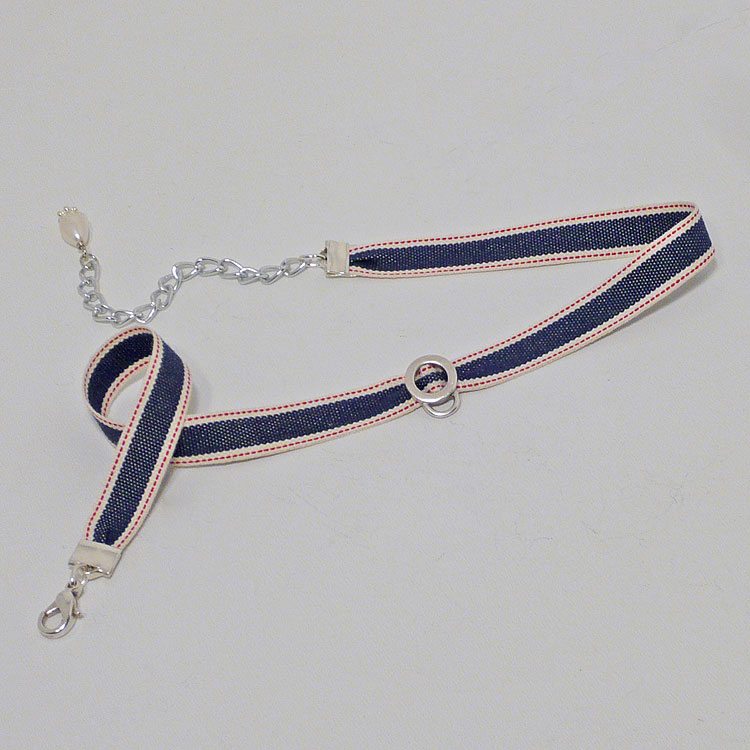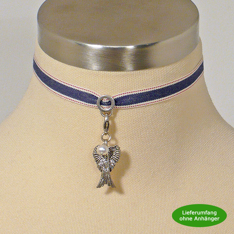 Mit dem Webband aus Jeansstoff passt dieses Kropfband hervorragend zu modernen Outfits und natürlich zur Jeans!