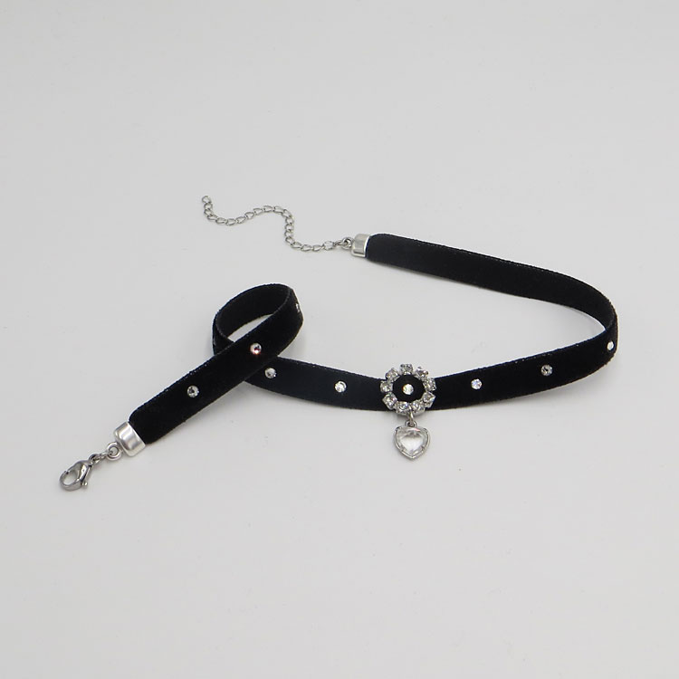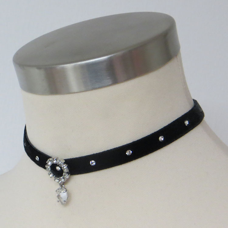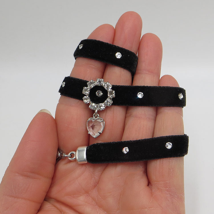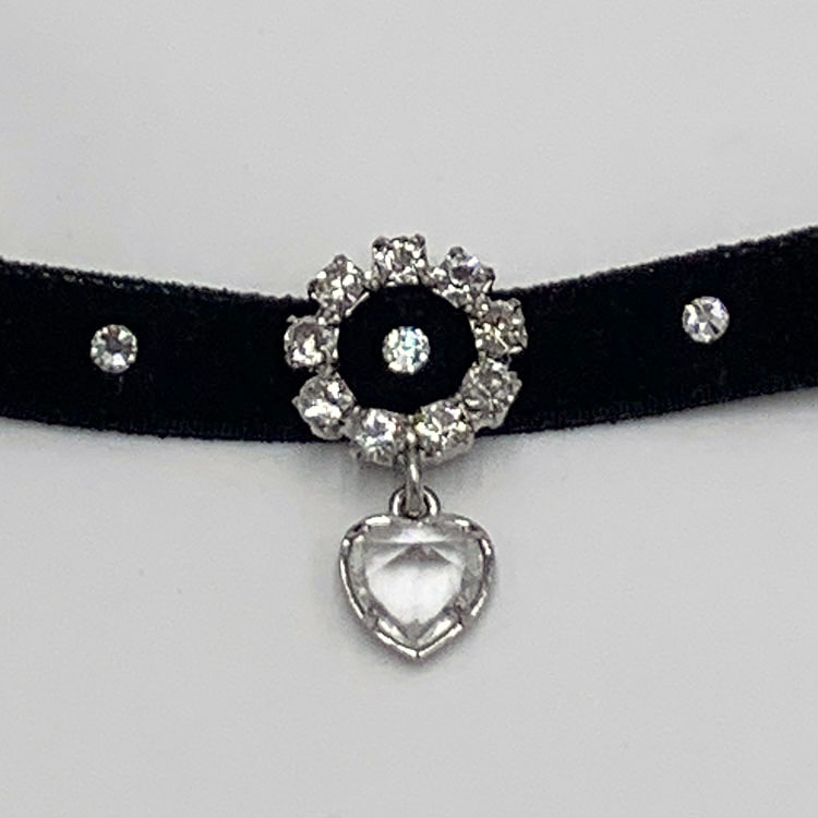 Kropfband, Samtband mit funkelnder Spange, Bordüre und facettiertem Glasherz