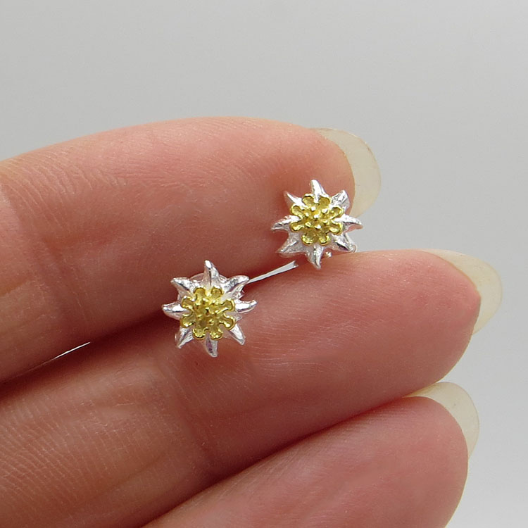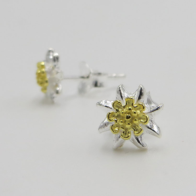 Die Ohrstecker sind aus 925 Silber und teilvergoldet. Das Edelweiß ist sehr filigran und klein gearbeitet - für alle die dezenten Ohrschmuck bevorzugen!